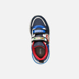 Low-cut junior sneaker with a sporty vibe and breathable design created under the partnership between Geox and Nintendo. This version of Ciberdron features an upper in a navy and royal-blue colourway with embellishments depicting the iconic videogame hero, Super Mario. Crafted from a leather-effect material and nylon, it has a sole fitted with lights that will lend instant energy to children’s everyday adventures.