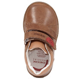 Geox brown shoe with velcro fastening.