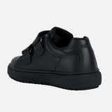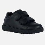 Casual-looking breathable low-cut junior sneaker taking its cues from tennis-court styles. This modern all-black version of Theleven boasts an easy-to-match pristine aesthetic. Crafted from plain supple leather with a handy double rip tape closure, it is ideal for school and leisure time activities alike.