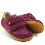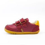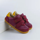 The Riley is a retro-inspired trainer, perfect for special occasions and everyday style. Embossed detailing and a two tone boysenberry and chartreuse colourway with racing stripe complete a preppy look, while the natural and breathable materials are designed to keep kids’ feet cosy. This understated style offers adjustability and a secure fit with double hook-and-loop strap fastening, with a padded heel collar for added comfort. Suitable for first walkers, this style fits true to size.
