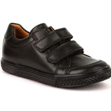 Froddo black leather shoe with toe bumper and double velcro fastening.