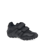 Boy's breathable non-slip sneaker with protective panels on the toe and heel. Perfect for schooldays but also for leisure pursuits, these Crush sneakers have a non-marking sole in durable rubber with an outstanding grip. Featuring a special design and protective rubber panels on the toe and heel, the sole has been endowed with Geox's exclusive iconic patented perforations which maximise breathability and comfort for the whole time the shoe is on the foot. The antibacterial breathable insole is removable for the sake of hygiene and convenience and has been lined with non-toxic chrome-free leather, to make sure the foot feels dry at all times. The upper comes in a versatile black palette and boasts a double riptape closure, meaning it is easy to put on and ensures an adjustable fit.