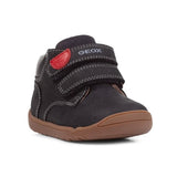 Geox Macchia Boy in navy is a perfect little boot for an early walker. Soft leather and a flexible sole help aid movement whilst the rubber toe bumper protects toes and against scuffing. The double velcro fastener means easy on/off and a great fit. Inside the leather lining keeps feet breathing combined with the Geox breathable sole.