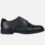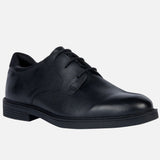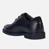 Lace-up Oxford lace-up shoe for boys with a rounded toe and slender sole. It has been crafted from supple plain black leather and boasts a timelessly classic aesthetic and peerless comfort levels. With a refined tapering silhouette, Zheeno will prove to be perfect for schooldays and formal occasions alike.
