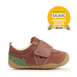 Our pliable yet sturdy Shuffle pre-walker leather shoes are perfect for your little boy to wear as they start to crawl and explore. Designed especially for this significant life stage, the flexible, lightweight soles will help to protect their precious toes from rough, uneven surfaces. The uppers are made using the softest leathers. Padded ankles, cushioned insoles and breathable mesh linings also help to keep feet snug and comfy. The wide single rip-tape fastening is easily adjustable to get a secure fit.