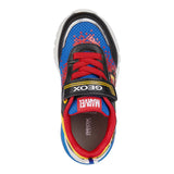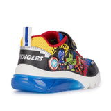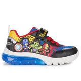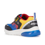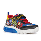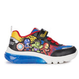 Cushioned and breathable boys’ sneakers with a sporty and dynamic vibe, featuring lights built into the outsole. Shown here in black and royal blue, Ciberdron showcases a bright active-style upper dedicated to the Avengers superheroes. A product of the partnership between Geox and Marvel, Ciberdron is crafted from mesh and a leather-effect material, and is the perfect companion for school days and playtime alike.
