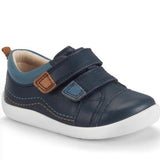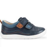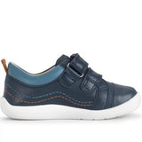 A clubhouse classic that goes stylishly back in time – in soft navy leather with decorative stitching. Breathable leather linings, padded ankle support and cushioned insoles give little feet instant lasting comfort as they wear them. There is also a flexible and lightweight sole for easy, natural movement. Removeable footbed and child-friendly double riptape fastenings achieve a secure fit.