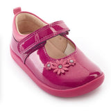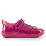 A pretty berry coloured patent shoe with floral detailing, designed to support their first steps and everything that follows. Breathable linings and padded ankles provide comfort and support for first steps, while the lightweight, flexible sole encourages natural movement. The rip-tape fastening ensures easy adjustment by little fingers.