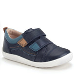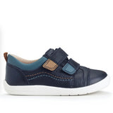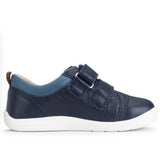 Our Playhouse first walking shoes are made from soft leather upper in a versatile navy colourway for everyday styling. Fit is perfect every time with a double bar rip-tape fastening for easy adjustment and precision fit. The leather lined insole is removable too. Those tentative first steps are made easier with flexible lightweight soles that move and flex and have just the right amount of grip for natural, easy exploration. What’s more, there’s heel and toe bumpers for extra protection where it's needed most. Superior comfort in all the right places comes from padded ankles and cushioned insoles.