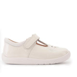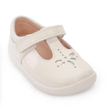 A classic T-bar with punched detailing, our Puzzle in stunning patent white will add wow to any outfit. There is a removable, leather lined insole for breathable comfort and a great fit. The rubber sole has grippy flex grooves to aid wobbly walkers, while an easy to adjust riptape fastening makes it easy to get your little ones dressed and ready to move and explore.