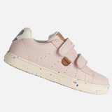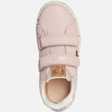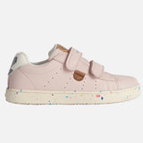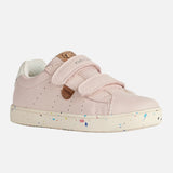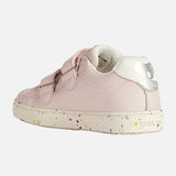A product of the partnership between Geox and the WWF, this low-cut junior sneaker is packed with casual city stylishness. This light-pink version of Kathe is a shoe with a sustainable core made from a recycled leather-effect material. With a sleek tennis-court-style design featuring a practical double riptape fastening, this flexible comfortable piece of footwear was designed for schooltime and leisuretime alike.
