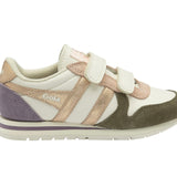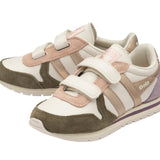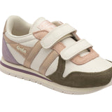 Gola’s bestselling women’s Daytona Quadrant trainer gets a scaled down look just for girls. This ‘90s style running silhouette from Gola’s back catalogue features an oversized EVA midsole to give an authentic nod to the original style. Complemented with an off white upper and a four colour combination trim of khaki, rose gold, lily, pale pink, this twin-bar hook and loop fastening Gola trainer is a highly versatile and comfortable option for girls.