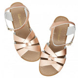 The Original Salt-Water Sandal has our signature hand stitched sole and water resistant plaited leather upper. All Salt-Waters come with rust proof buckles, can be worn in the water and can be handwashed with a gentle detergent.