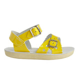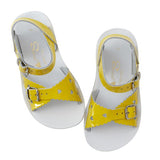 The Sweetheart delivery is a pretty sandal with heart shaped cut-outs and scalloped edges. The Sweetheart is fully adjustable with buckled toe and ankle straps. The entire Sun-San range comes on a comfortable spongy urethane sole with rust proof buckles. They can be worn in the water and put through a cool machine wash.