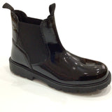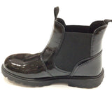 Geox Shaylax black patent pull on ankle boot with elasticated sides.