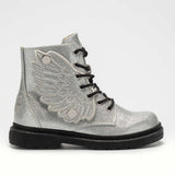 Lelli Kelly Silver glitter boot with lace and zip fastening.