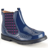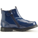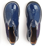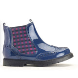 Whatever the adventure, this stylish boot will carry little feet through any day in comfort. The inside zip fastening is useful for getting boots on and off with quickly and with ease and the durable sole is ready for any adventure. Crafted in elegant French navy patent with a check elastic these boots will make any outfit complete.