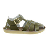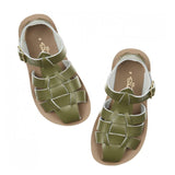 The Shark is a traditional fisherman style sandal and is a great sandal for active feet. This tough design has a woven semi-closed toe and heel offering extra protection for when they̻re playing football or scooting. The entire Sun-San range comes on a spongy urethane sole with rust proof buckles. They can be worn in water and can be handwashed with a gentle detergent. The Sun-San Shark in Olive is perfect for both boys and girls.