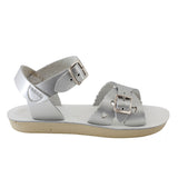 The Sweetheart delivery is a pretty sandal with heart shaped cut-outs and scalloped edges. The Sweetheart is fully adjustable with buckled toe and ankle straps. The entire Sun-San range comes on a comfortable spongy urethane sole with rust proof buckles. They can be worn in the water and put through a cool machine wash.