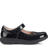Girl's softly-fitting breathable Mary-Jane-style ballet flat. With a traditional appearance, Naimara is a ballet flat that will prove to be an easy match to school uniform and formal outfits alike. Crafted from plain black Patent , it is a perfect piece of everyday footwear for schooltime.