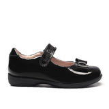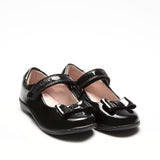This Lelli Kelly Perrie school shoes comes in an E, F and G Fitting. Lelli Kelly School Shoes come in black patent leather. 3D black bow sits on the front uppers of the shoes. Lelli Kelly black embroidered branding is on the adjustable hook and loop strap fastening. Pink Leather lining completes the look.