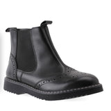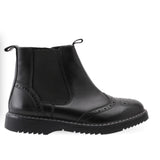A classic chelsea boot with fashionable chunky sole and brogue upper from our Angry Angels range. In soft black leather, our Revolution boot is perfect for busy school days as it comes with a specially engineered sole which is durable but also flexible and lightweight. Easy to put on and take off thanks to the inside zip fastening with elastic side panel.