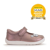 Our Fairy Tale first steps shoes in soft pearlised taupe leather are a magical fusion of style, comfort and support. A shimmering pair with simply gorgeous flower appliques featuring a diamante centre. Breathable textile/leather linings, padded collars and removable, leather lined footbed provide optimal comfort and fit. The rip-tape fastening helps to keep shoes firmly in place. Strobel constructed for extra flexibility at this crucial developmental stage.