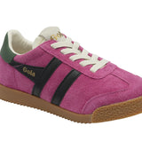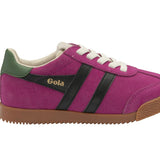 Gola’s bestselling Elan style has been revamped and downsized for kids in the new season collection! Now, little ones can step out in style with the iconic Elan design. Gola Elan was originally created in 1971 and was pitched as a multi-purpose training shoe, however now taking a different role with its modern vibrant colour combinations. Gola kids’ Elan features a suede upper and a contrast black wingflash and evergreen heel tab, making this a fun old-school footwear option for little ones. Other features include a gum sole unit, elasticated lace up detail making them effortless to get on/off and iconic Gola wingflash branding.