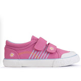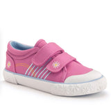 Our Sandy Beach pink canvas shoes are perfect for adventurous little explorers. Whether rock skimming or pond dipping, the engineered tread design helps feet to move with confidence and ease. The double rip-tape closures make them a cinch to pull on, and a highly flexible sole helps feet to have a barefoot feel all-day long. Easy to look after as these shoes can be machine washed at 30-degrees.
