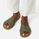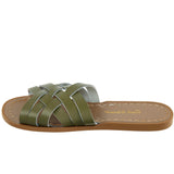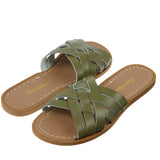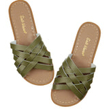 Reminiscent of the Mexican Huarache sandal that your Grandparents wore back in the 1960s and originally sold by Salt-Water in the USA in the 70s, This Olive Retro Slide style and it’s elegant woven leather toe takes the Salt-Water style to a whole new level of sophistication. We have updated the classic Retro from the back catalogues into a modern slider sandal for those who prefer to not have an ankle strap.