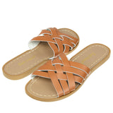 As with all of our Salt-Water Sandal styles The Retro Slide is made from our signature 100% waterproof leather and can be hand washed using warm water and a gentle detergent. Originally sold in the USA in the 1970s, we have updated the classic Retro from the archive collection into a modern and practical slider sandal. The Retro Slide in Tan is a great every day slider and works with all outfits - from boho chic to everyday office wear.