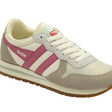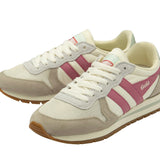 A vintage inspired jogger meets a ‘90s colour palette to form Gola Daytona for women. This reimagined version of Gola’s back catalogue style Daytona features an oversized EVA midsole to give an authentic nod to Gola’s genuine heritage roots. Teamed with a feminine colour palette of off white, feather grey and fluro pink executed in nylon and suede, Daytona is a season staple footwear option.
