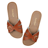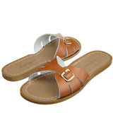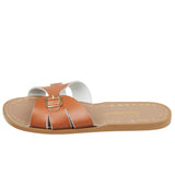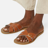 The Salt-Water Slide in Tan is your perfect travelling partner. 100% waterproof, 100% leather and 100% stylish. Based on The Classic style with an adjustable buckle across the foot, but with no ankle strap making this tan slider sandal both practical and fashionable. Built on our signature hand stitched rubber sole it is as durable as it is beautiful.