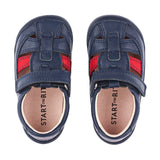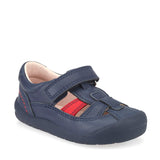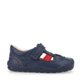 Ready for some adventures? This cool navy shoe will offer maximum protection for tiny toes with its soft cushioning. A breathable leather lining will absorb any moisture and super-soft navy leathers ensure barefoot comfort. A simple riptape fastening keeps feet snug and the ultra-flexible sole will encourage natural movement.